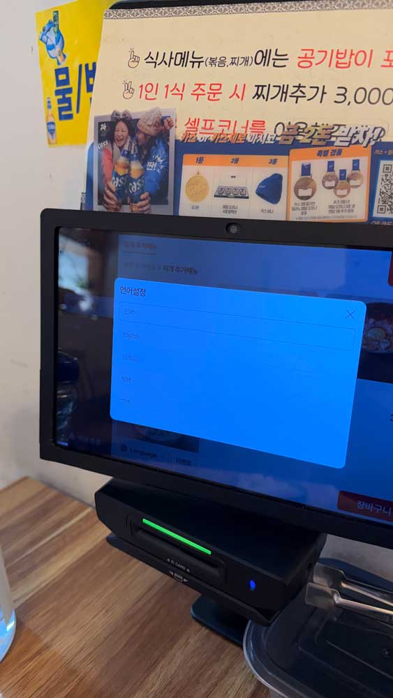 This place uses kiosk ordering, so you can finish ordering without a long conversation. For people not confident in Korean, that can actually be a plus. The usual flow is: choose a menu → select options → pay → check your receipt or order number. To avoid mistakes, just double-check right before paying whether your stew add-on option is selected.