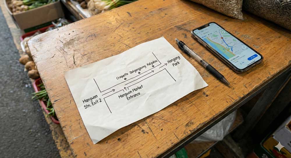 If you only visit the market and leave, it can feel a bit unfinished. Usually, you can continue toward Mangnidan-gil for a café break, or take your food toward the Han River and open it up like a picnic.
