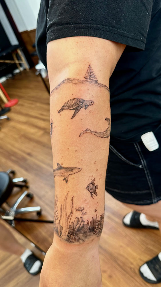 “Take a look at Andy’s fine-line artistry. Travelers from all corners of the globe visit me to transform their special moments into permanent souvenirs.